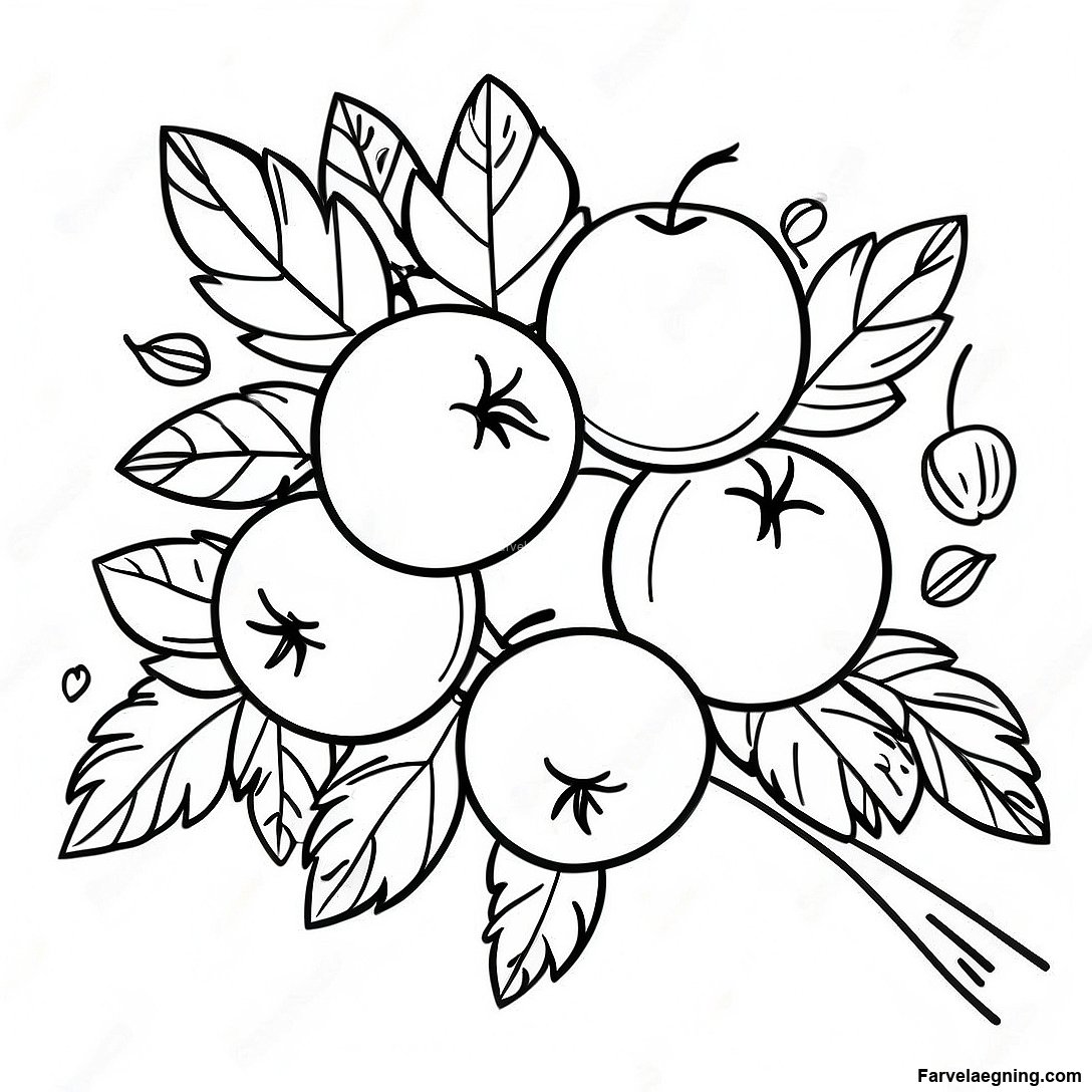 Download printbar PDF af Æbletræ Med Modne Æbler Farvelægningsside