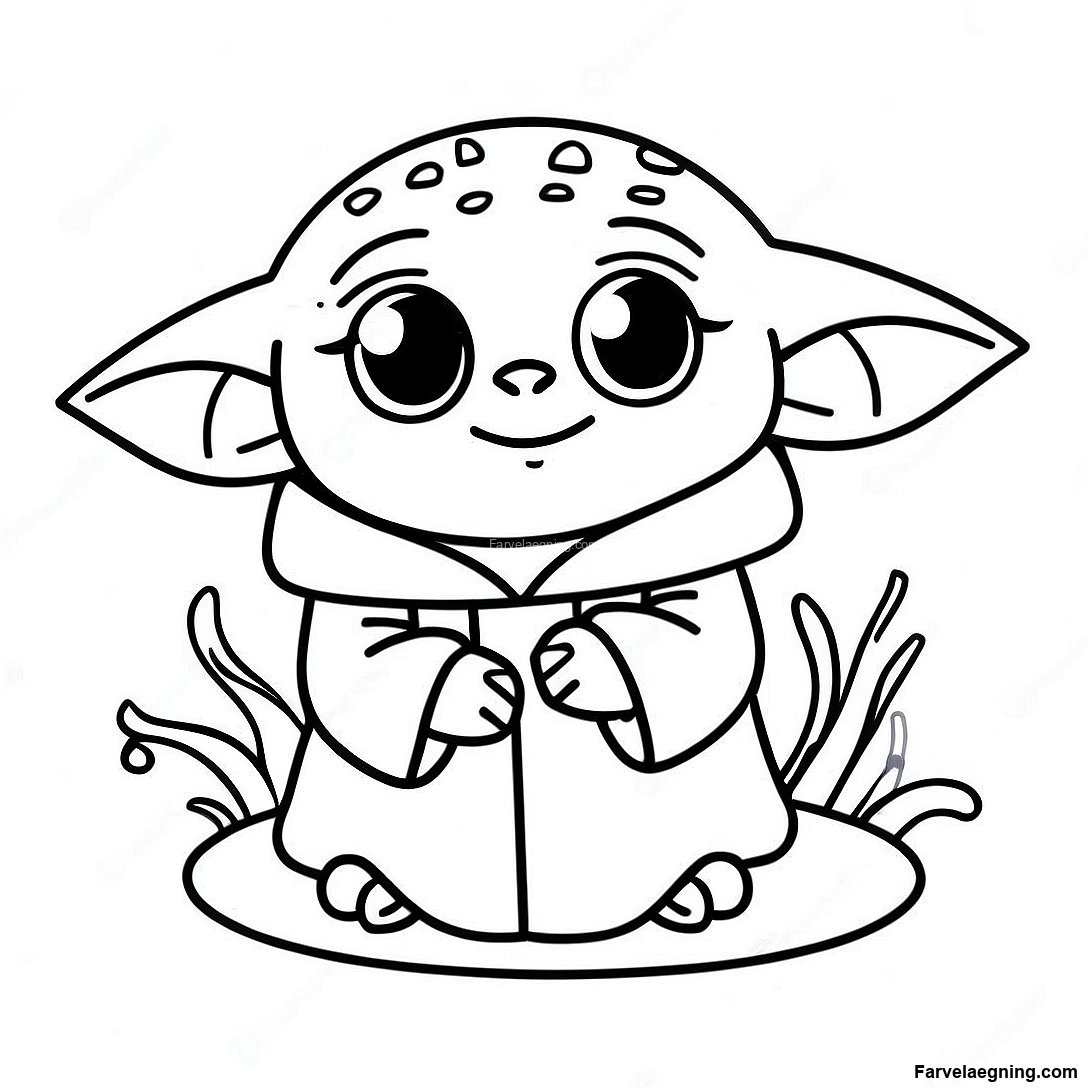 Baby Yoda Med Et Lille Kaeledyr Farvelaegningsside