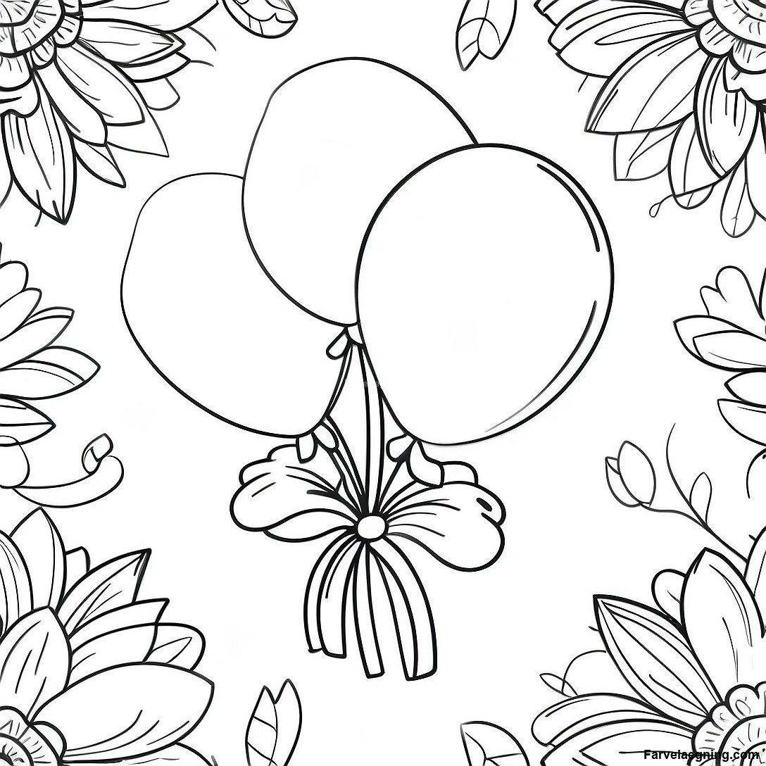 Download printbar PDF af Ballonbuket Farvelægningsside