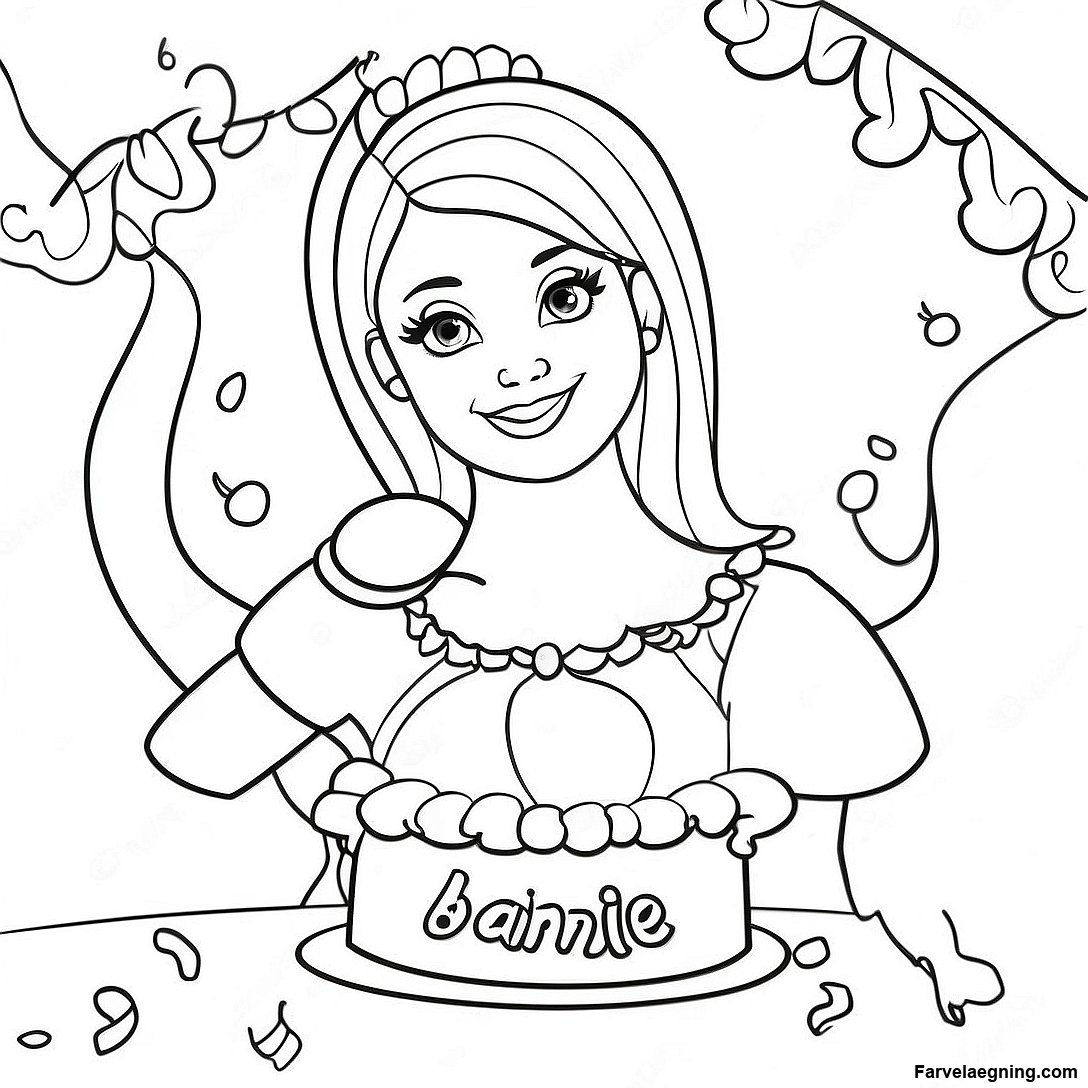 Barbie Fødselsdagsfejring Farvelægningsside