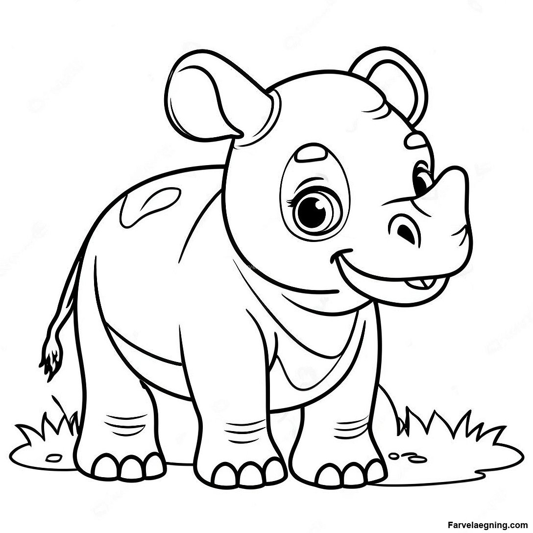 Download printbar PDF af Bedårende Baby-Næsehorn Farvelægningsside
