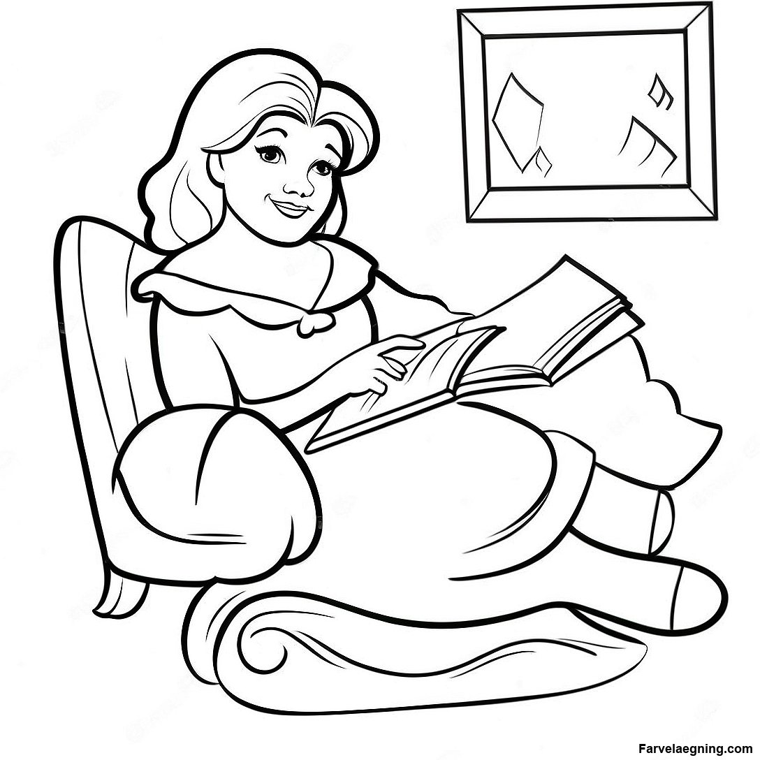 Download printbar PDF af Belle Læser En Bog Farvelægningsside
