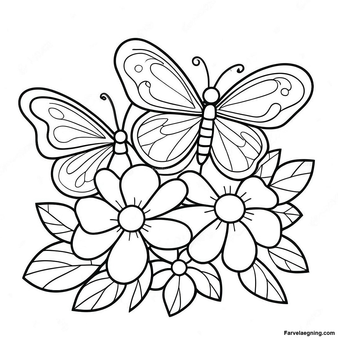 Download printbar PDF af Blomst Sommerfugl Farvelægningsside