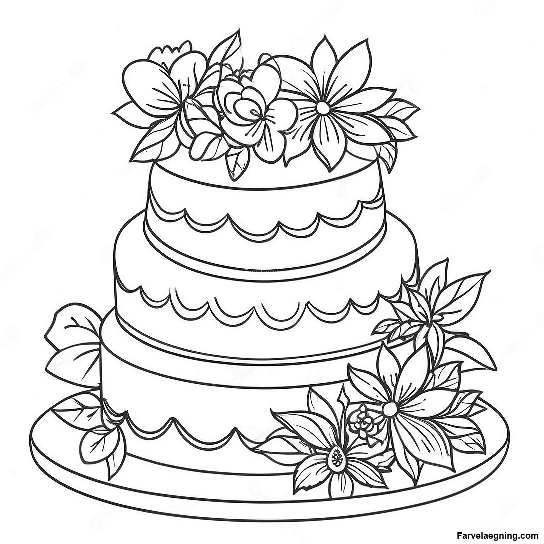 Download printbar PDF af Blomster Bryllupskage Farvelægningsside