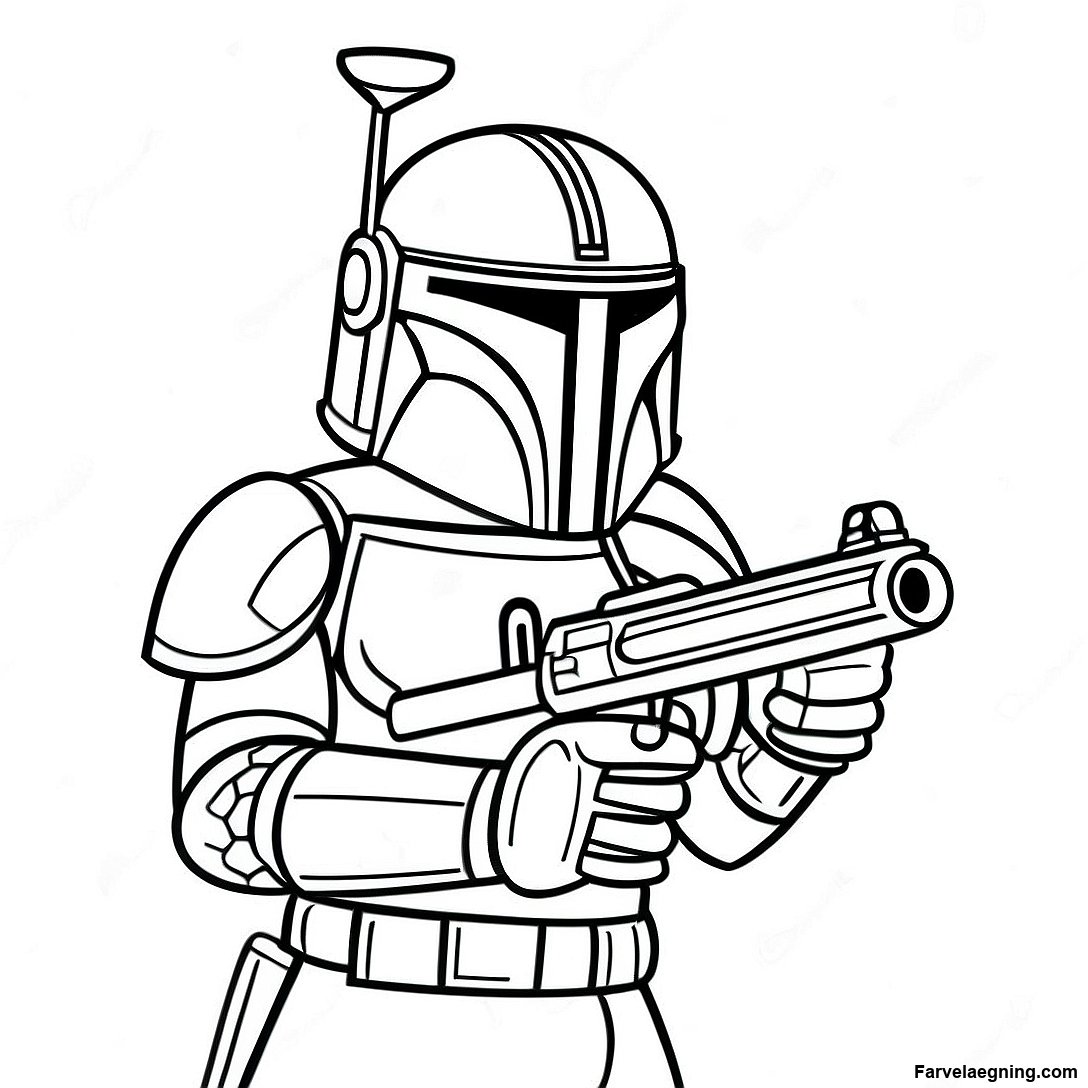 Download printbar PDF af Boba Fett Med Blaster Farvelægningsside