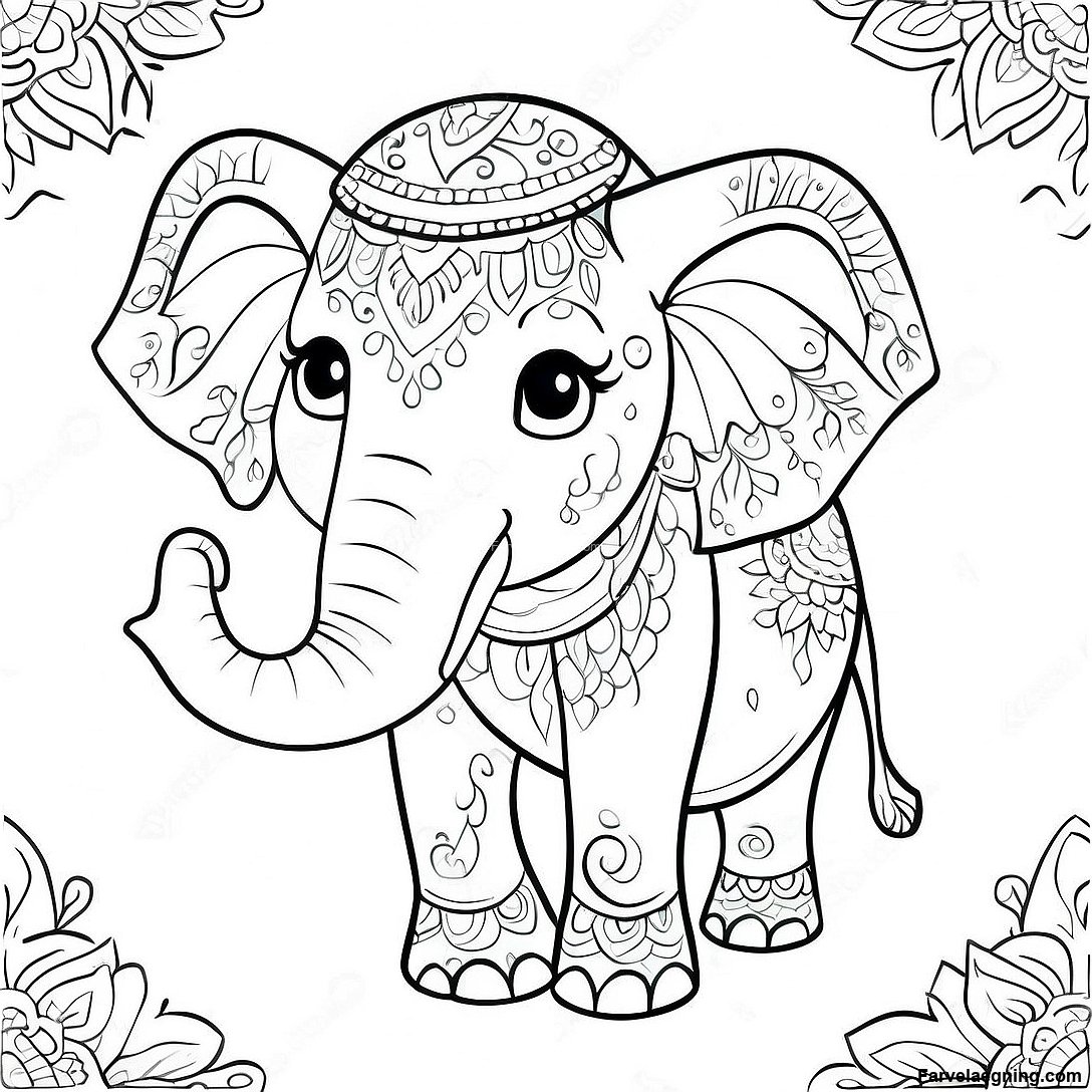 Boho Elefant Med Blomster Farvelaegningsside 62700 13859