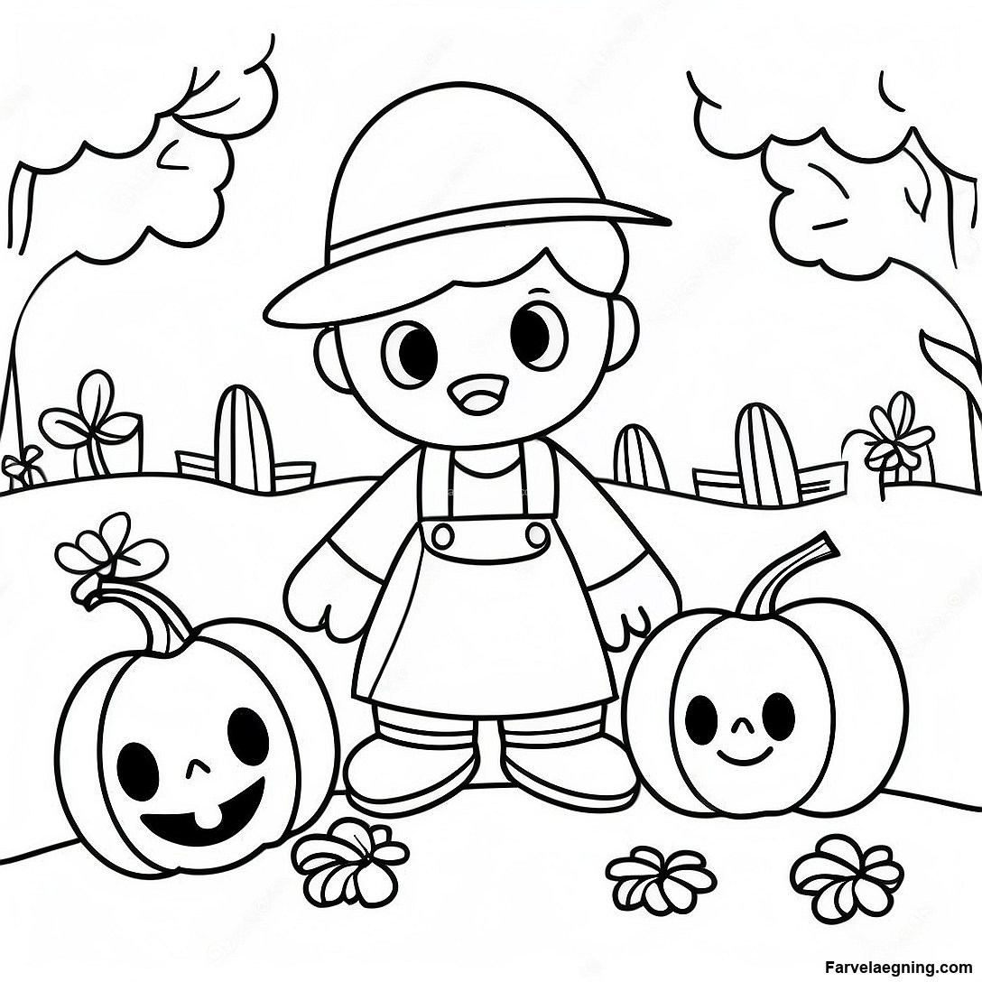 Download printbar PDF af Børnehave Græskar Mark Farvelægningsside