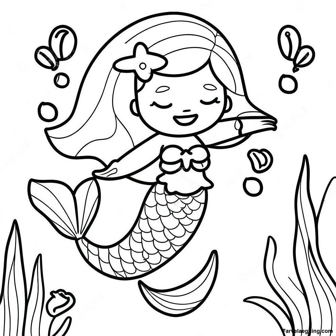 Charmerende Havfrue Under Vandet Farvelaegningsside