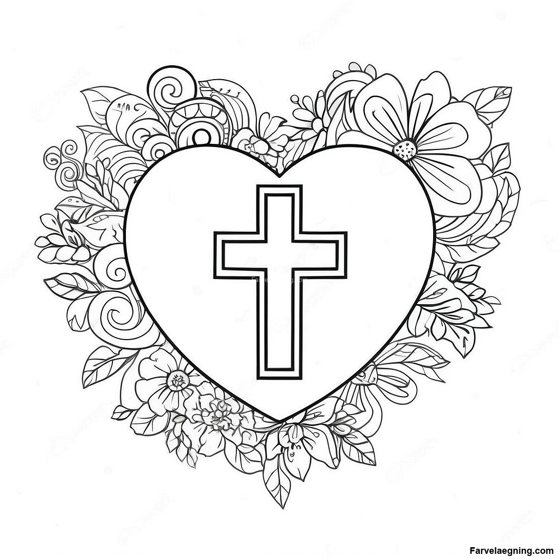 Charmerende Hjerte Med Kors Farvelaegningsside 84755 25781