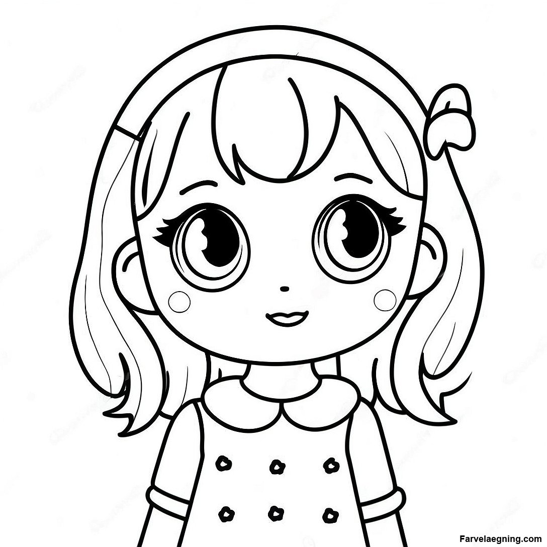 Charmerende Kawaii Anime Pige Med Store Øjne Farvelægningsside