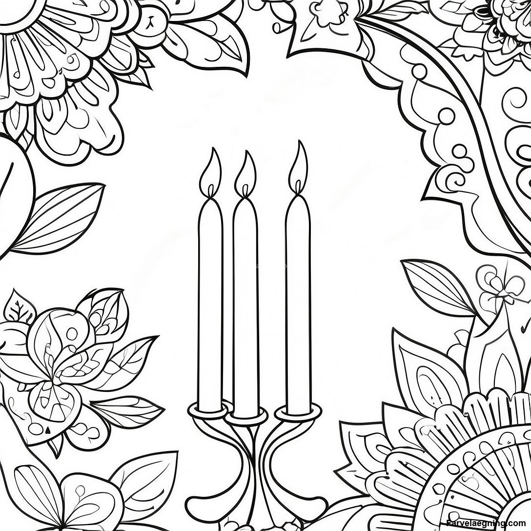 Download printbar PDF af Charmerende Shabbat Stearinlys Farvelægningsside