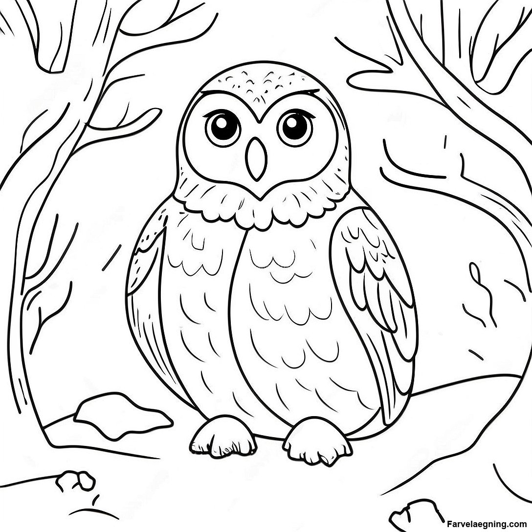 Charmerende Sneugle I En Vinter Scene Farvelægningsside