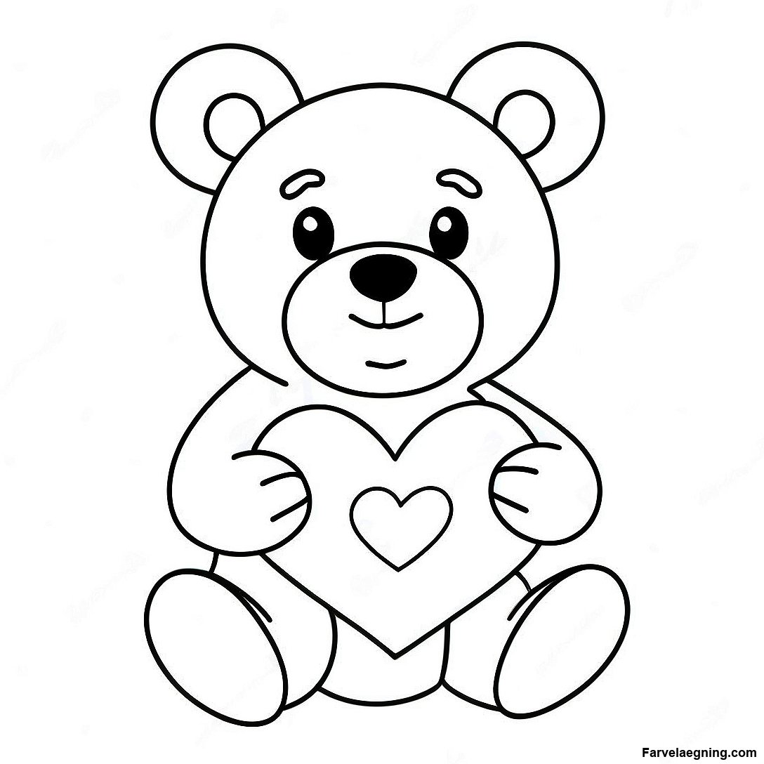 Charmerende Teddybjørn Holder Hjerte Farvelægningsside