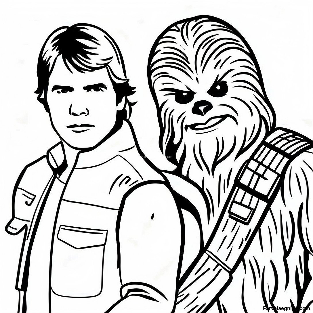 Download printbar PDF af Chewbacca Med Han Solo Farvelægningsside