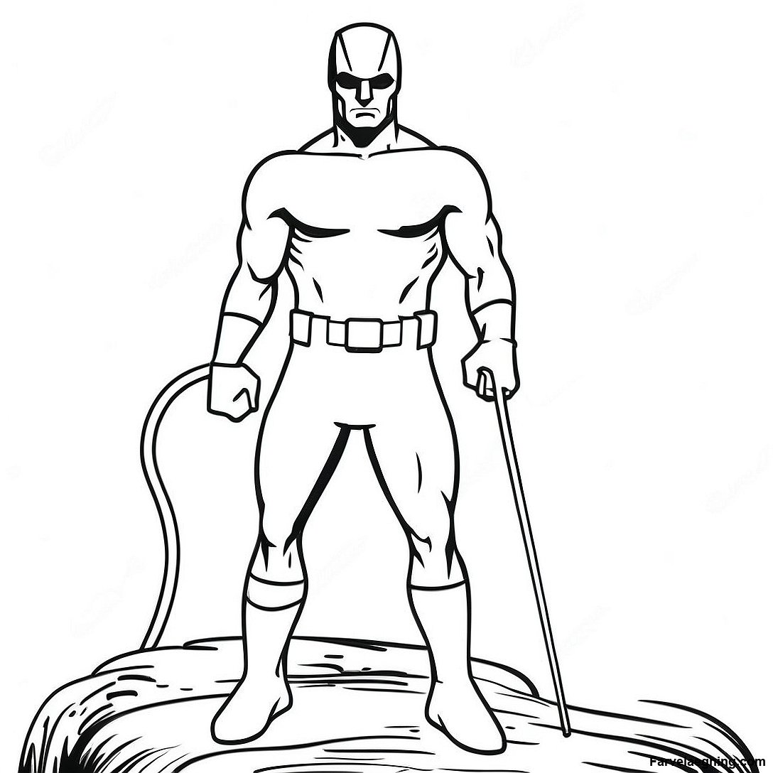 Download printbar PDF af Daredevil Med Sin Stok Farvelægningsside