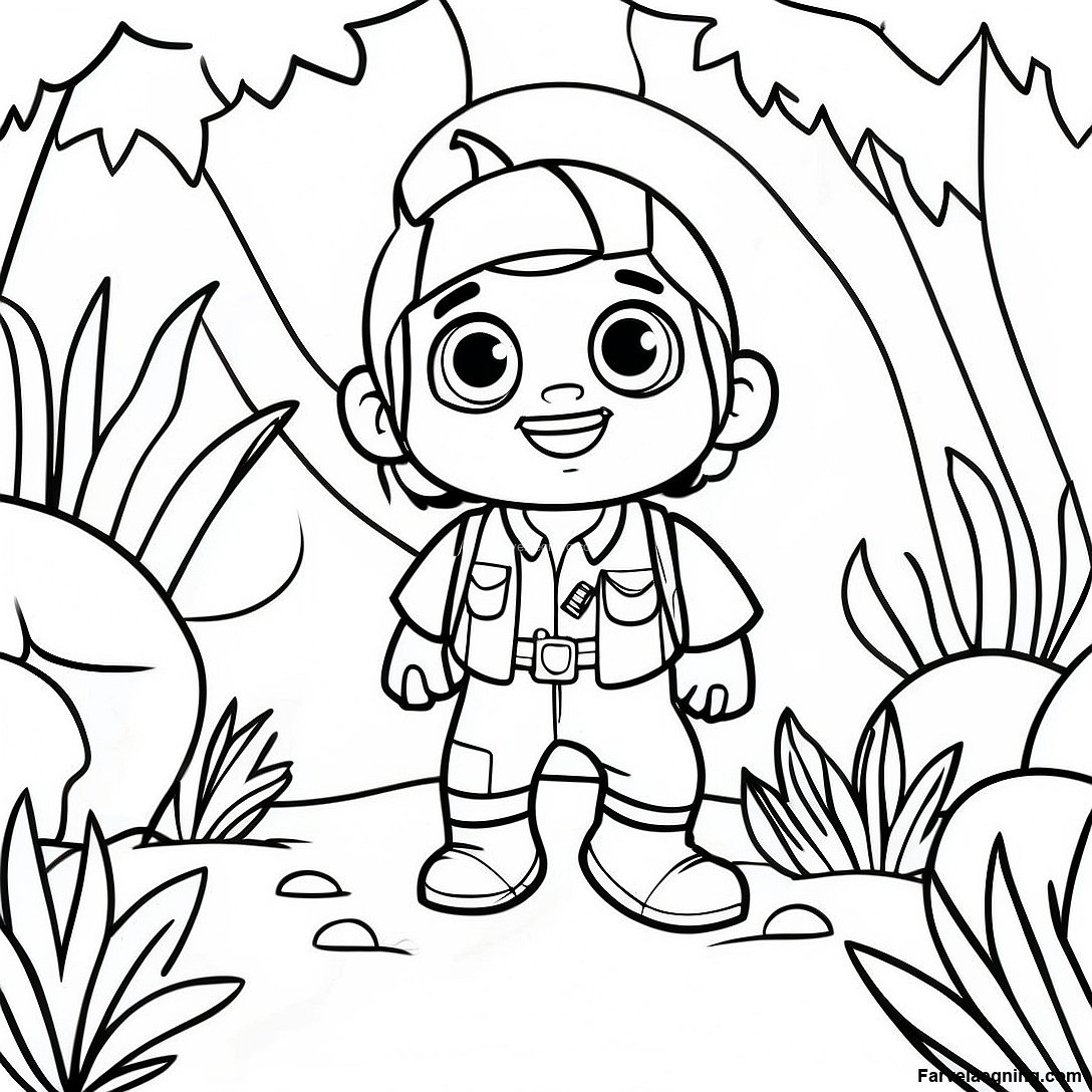 Download printbar PDF af Diego Udforsker Junglen Farvelægningsside