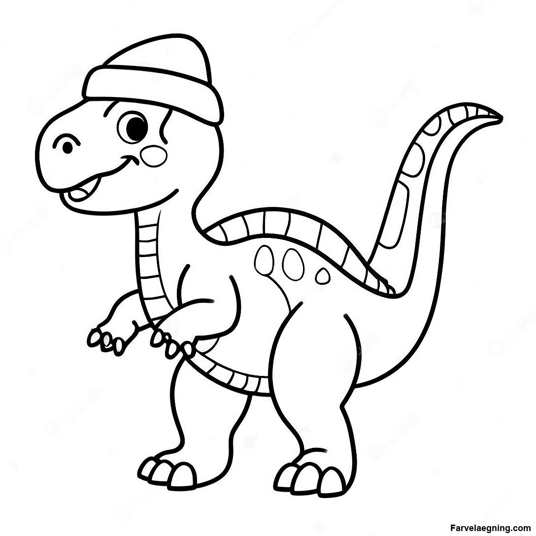 Download printbar PDF af Dinosaur I En Julemandshat Farvelægningsside