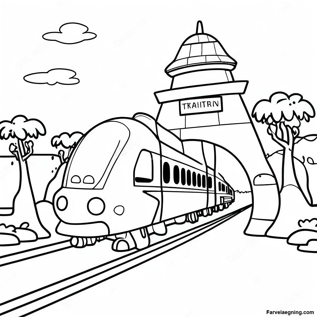 Download printbar PDF af Dinosaur Tog Station Farvelægningsside