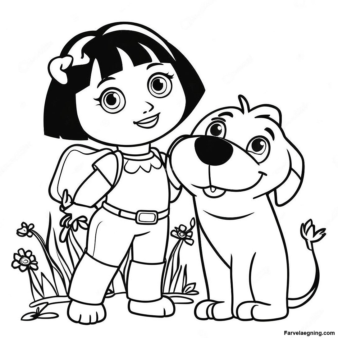 Download printbar PDF af Dora Og Boots Farvelægningssiden