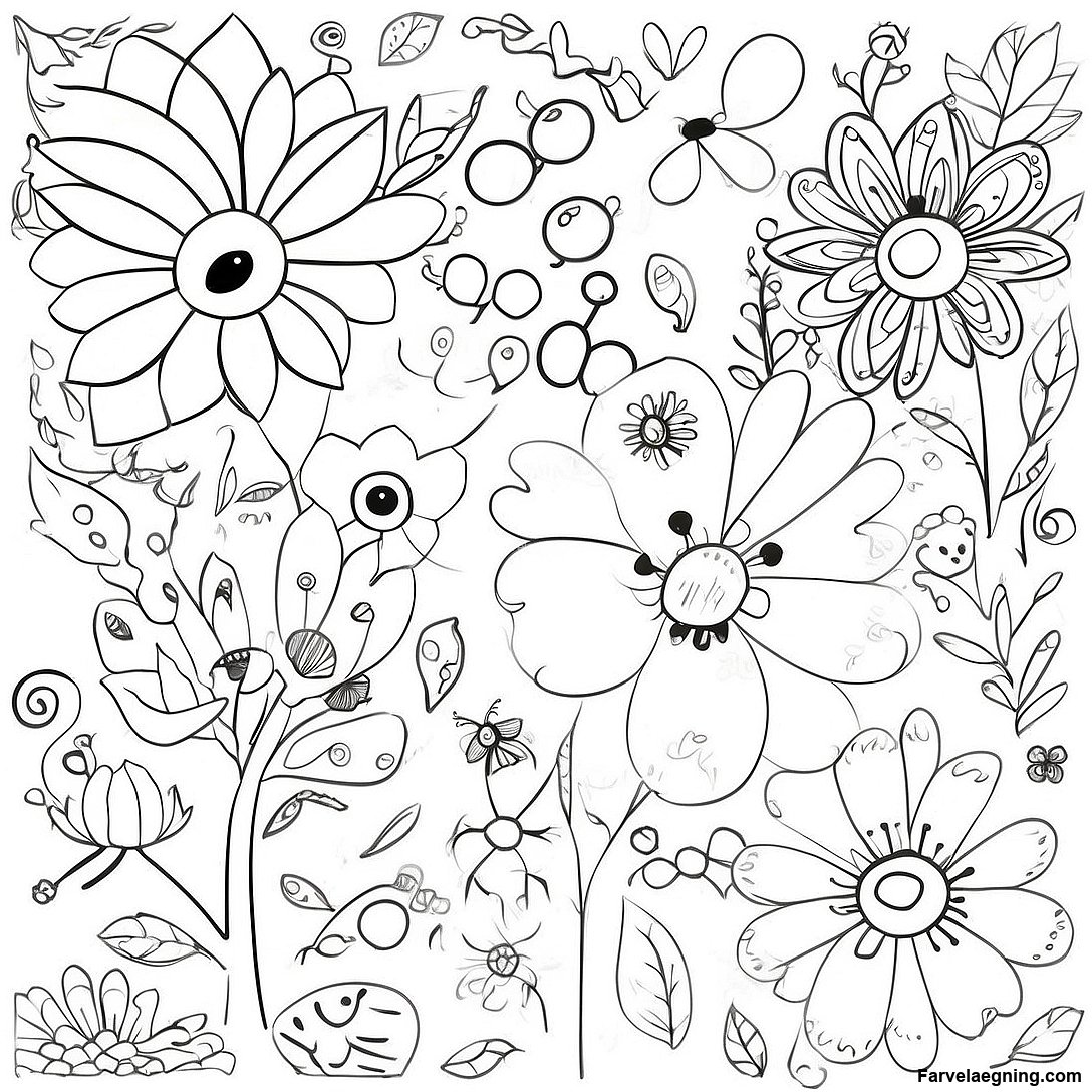 Farverige Forårsblomster Farvelægningsside