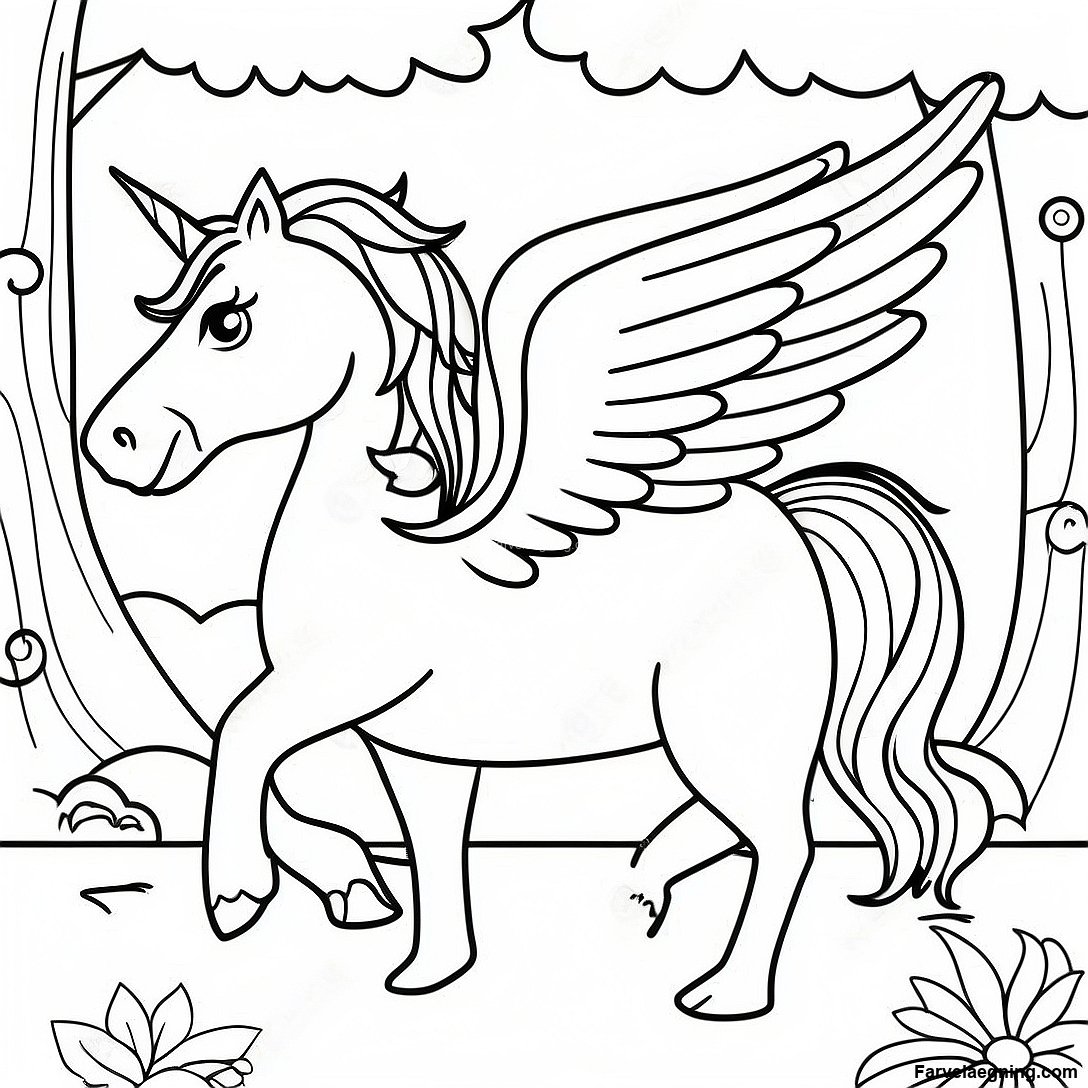 Fantasy Pegasus I En Magisk Skov Farvelaegningsside