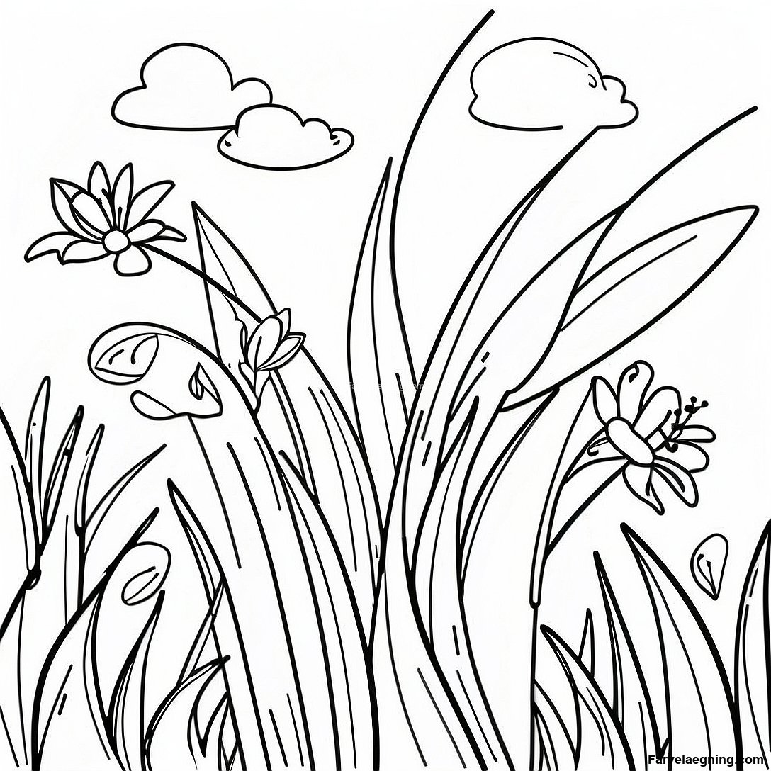 Download printbar PDF af Farvelægningsside Med Frodigt Grønt Græs