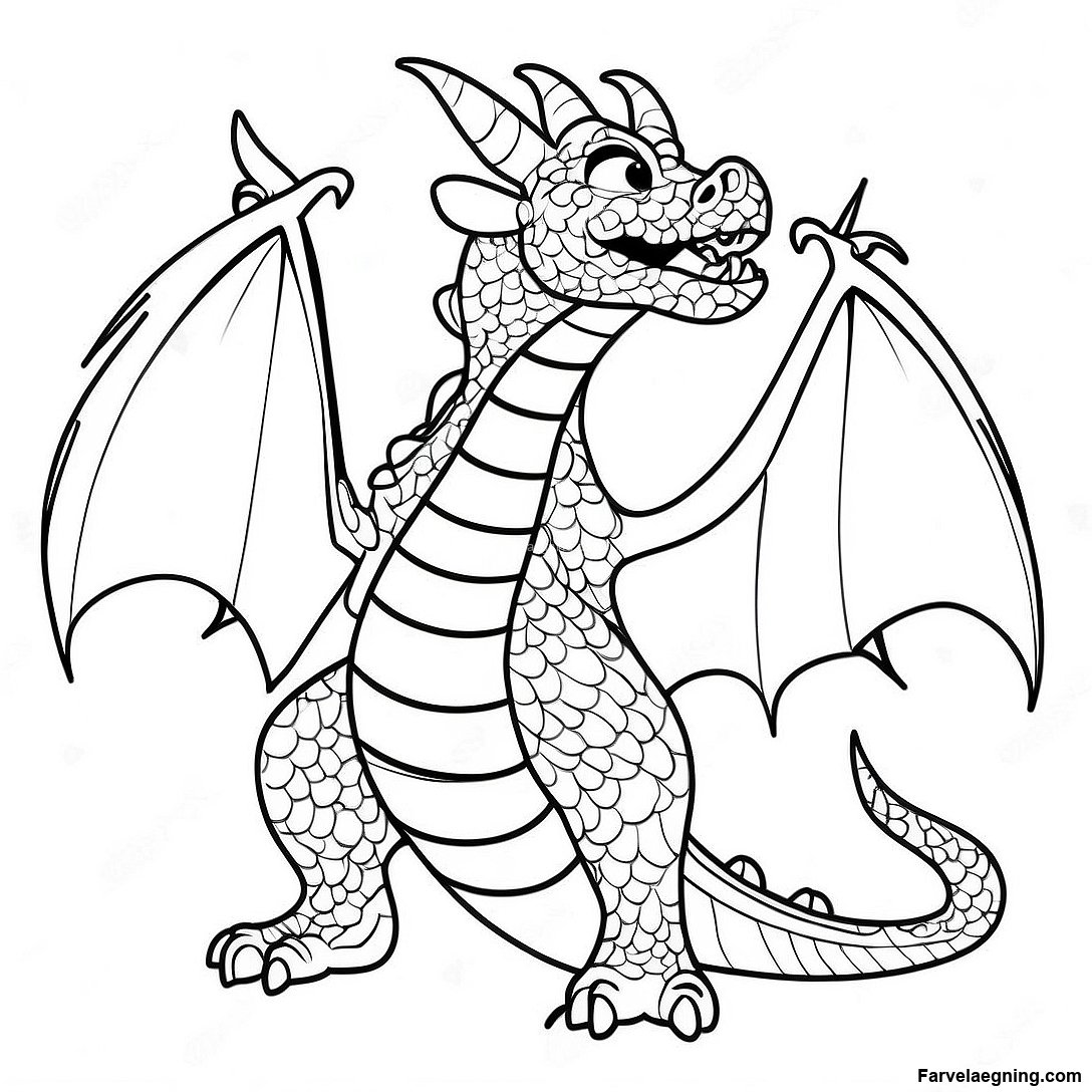 Download printbar PDF af Farvelægningsside Med Ildsprudlende Drage