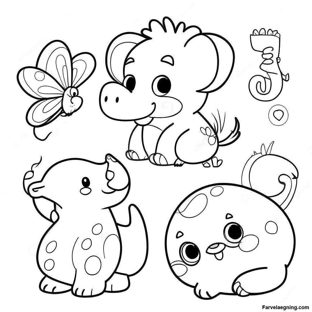 Download printbar PDF af Farvelægningsside Med Søde Dyretal
