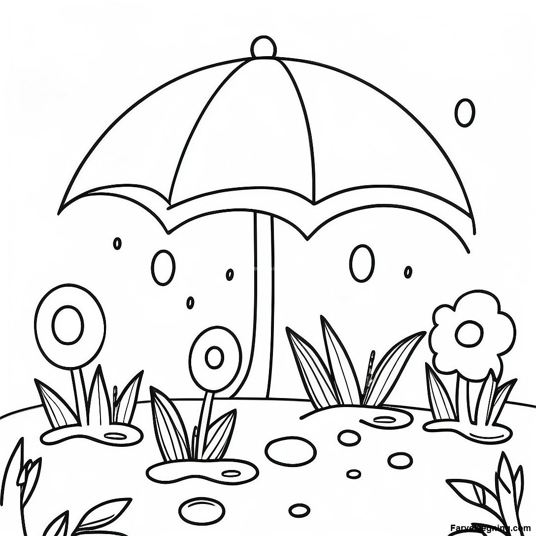 Farverig Blomsterhave Med Regndraber Farvelaegningsside