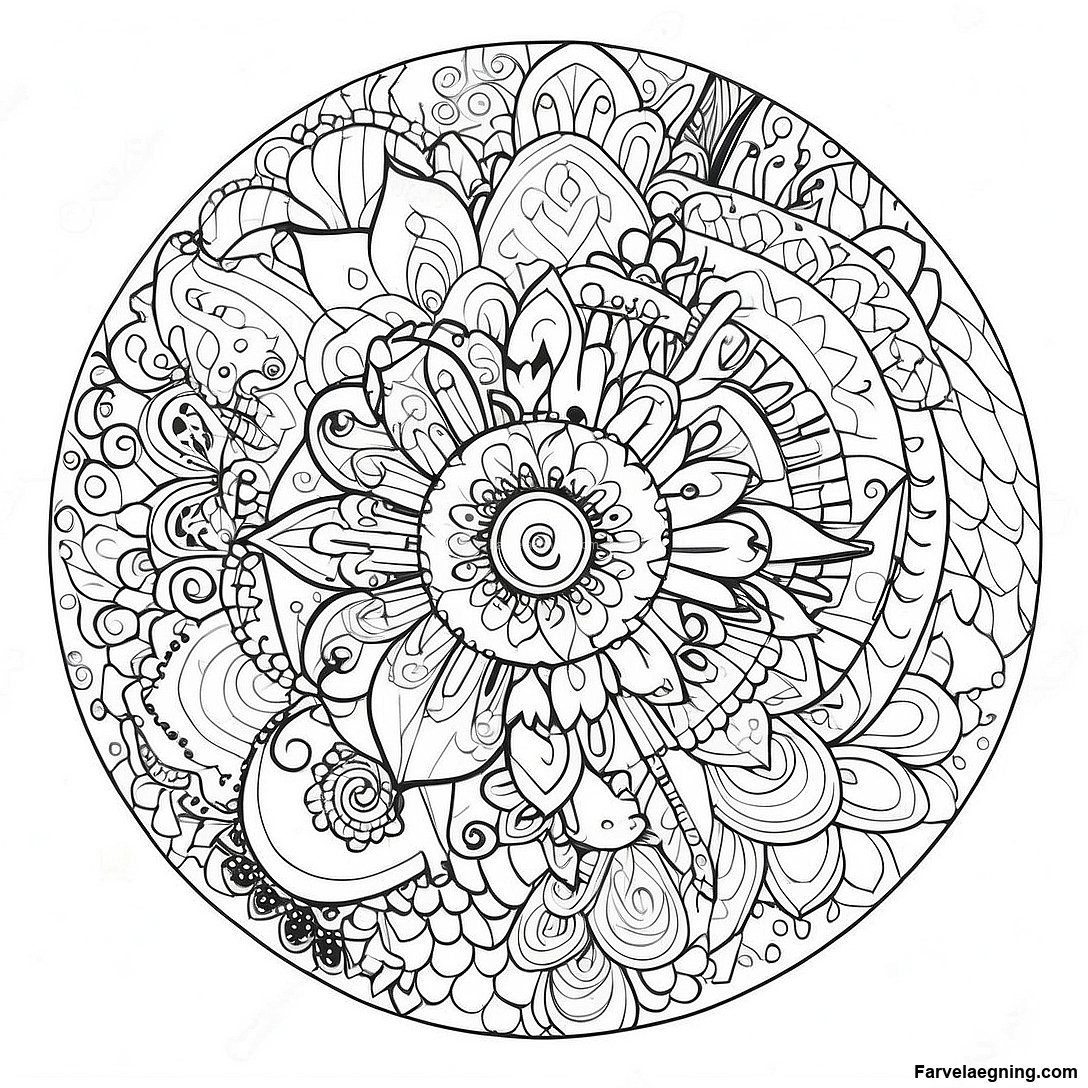 Farverig Dyremandala Farvelaegningsside