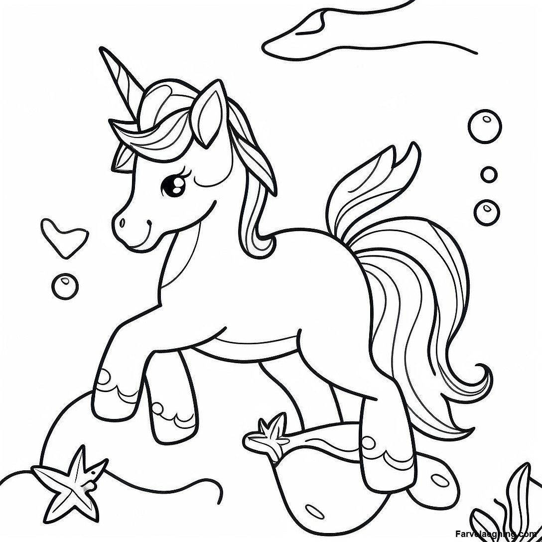Download printbar PDF af Farverig Enhjørning Havfrue Underwater Scene Farvelægningsside