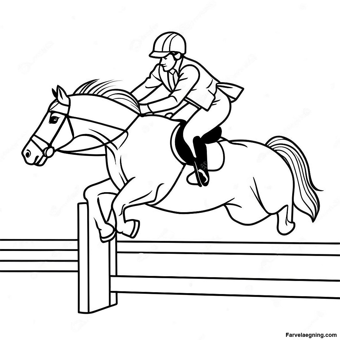 Farverig Farvelaegningsside Med Springhest Og Rytter