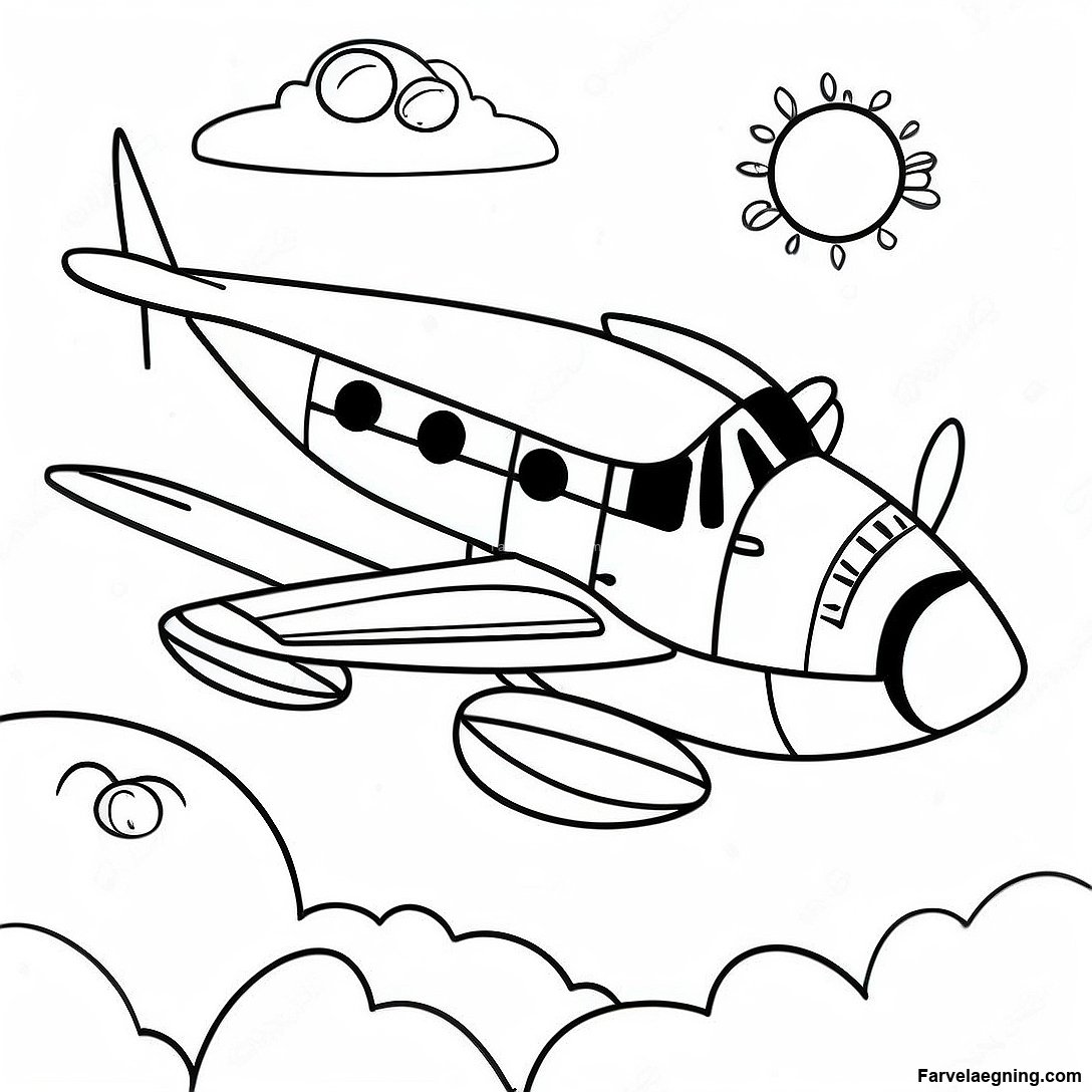 Download printbar PDF af Farverig Flyvende Fly Farvelægningsside