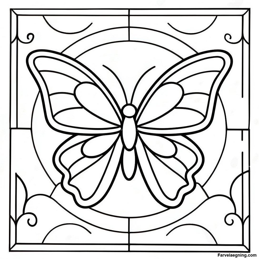 Farverig Glasmaleri Sommerfugl Farvelaegningsside