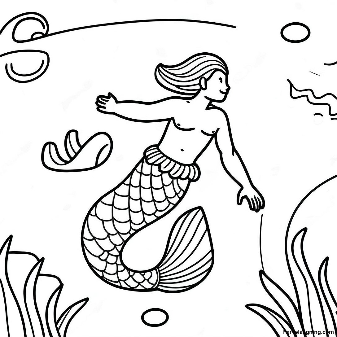 Download printbar PDF af Farverig Havmand Svømmer I Havet Farvelægningsside