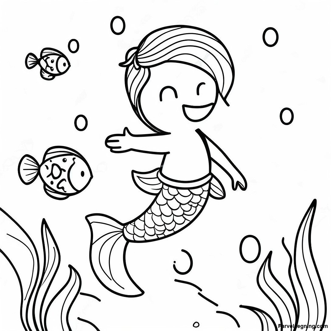 Farverig Havmand Svømmer I Havet Farvelægningsside