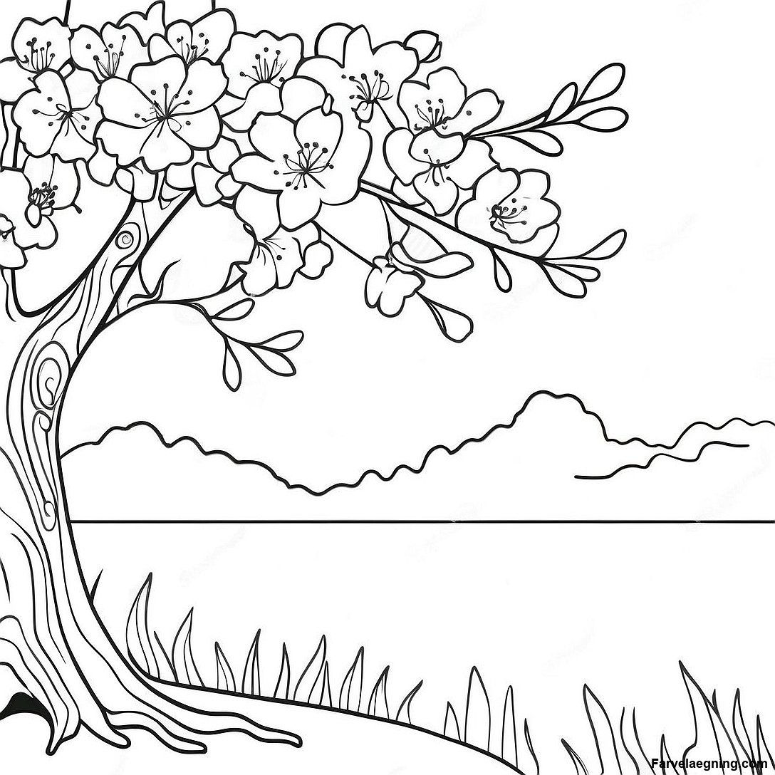 Download printbar PDF af Farverig Kirsebærblomst Træ Farvelægningsside