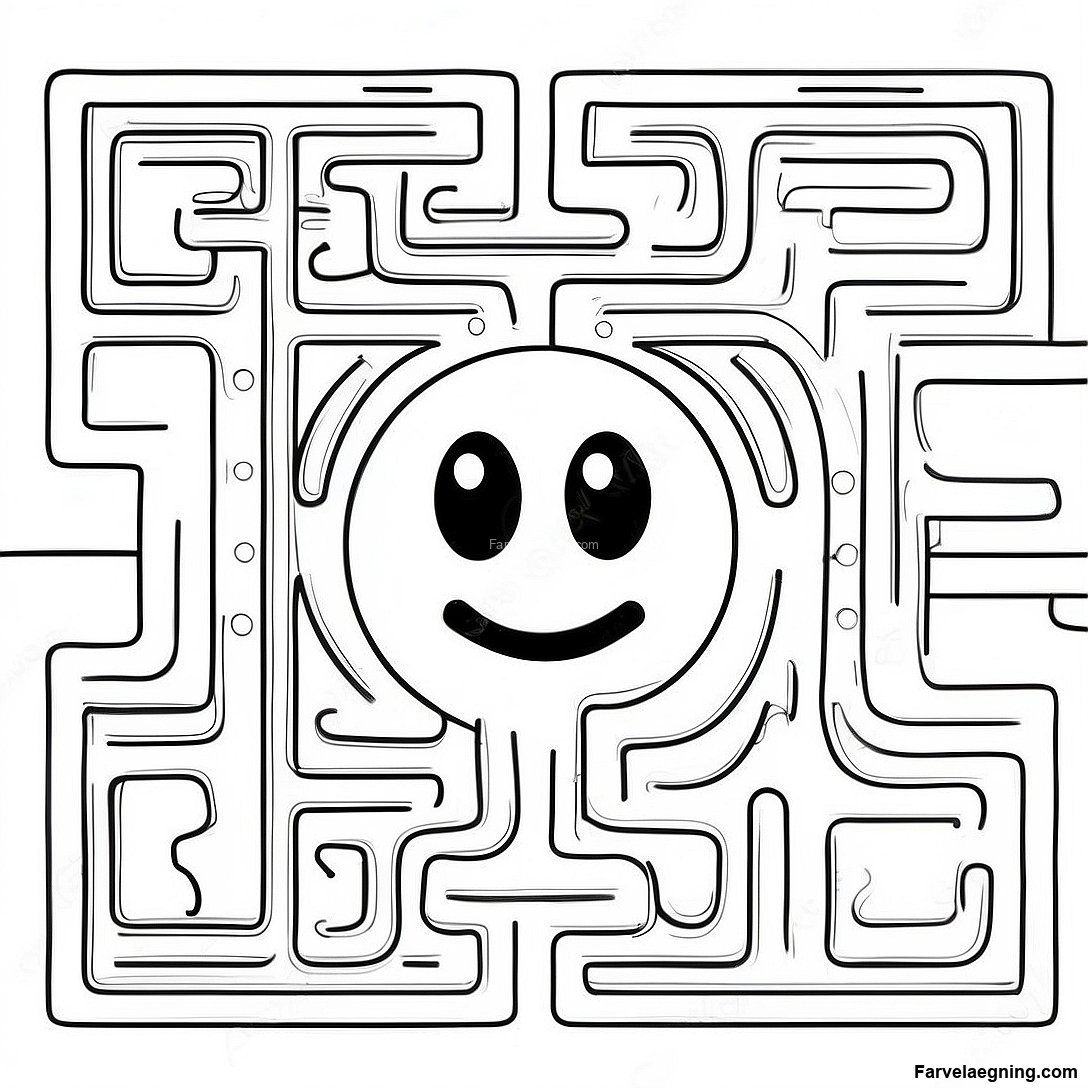 Download printbar PDF af Farverig Pac Man Labyrint Farvelægningsside