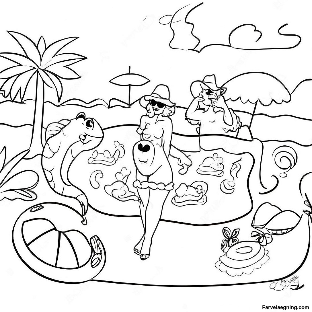 Download printbar PDF af Farverig Preppy Sommer Pool Party Farvelægningsside