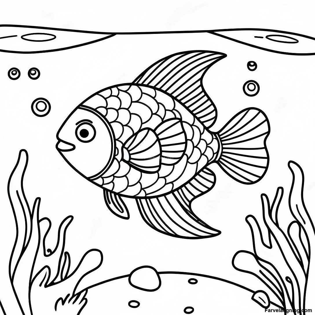 Download printbar PDF af Farverig Regnbuefisk Underwater Scene Farvelægningsside