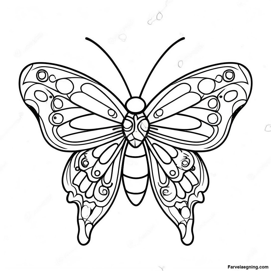 Download printbar PDF af Farverig Sommerfugl Møl Farvelægningsside