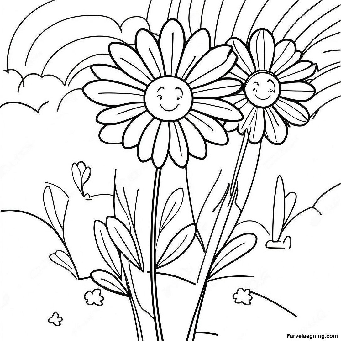 Download printbar PDF af Farverige Blomster Og Jord Farvelægningsside