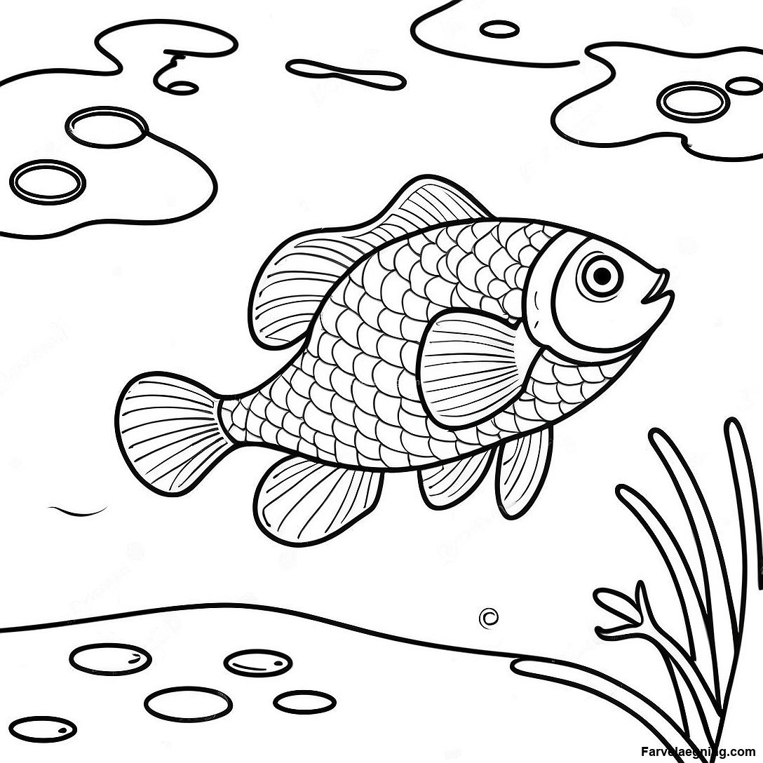 Download printbar PDF af Farverige Dam Fisk Farvelægningsside