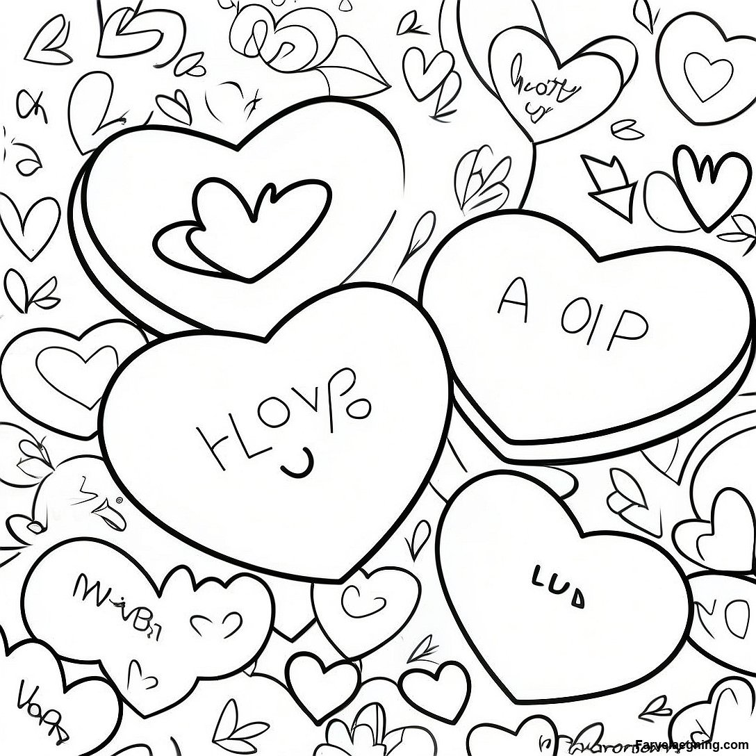 Farverige Samtalehjerter Farvelægningsside