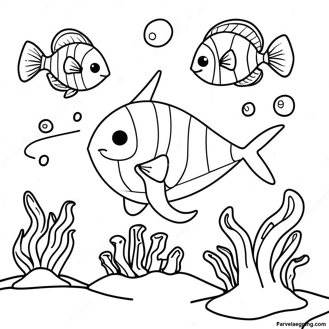 Download printbar PDF af Farverigt Hav Økosystem Farvelægningsside