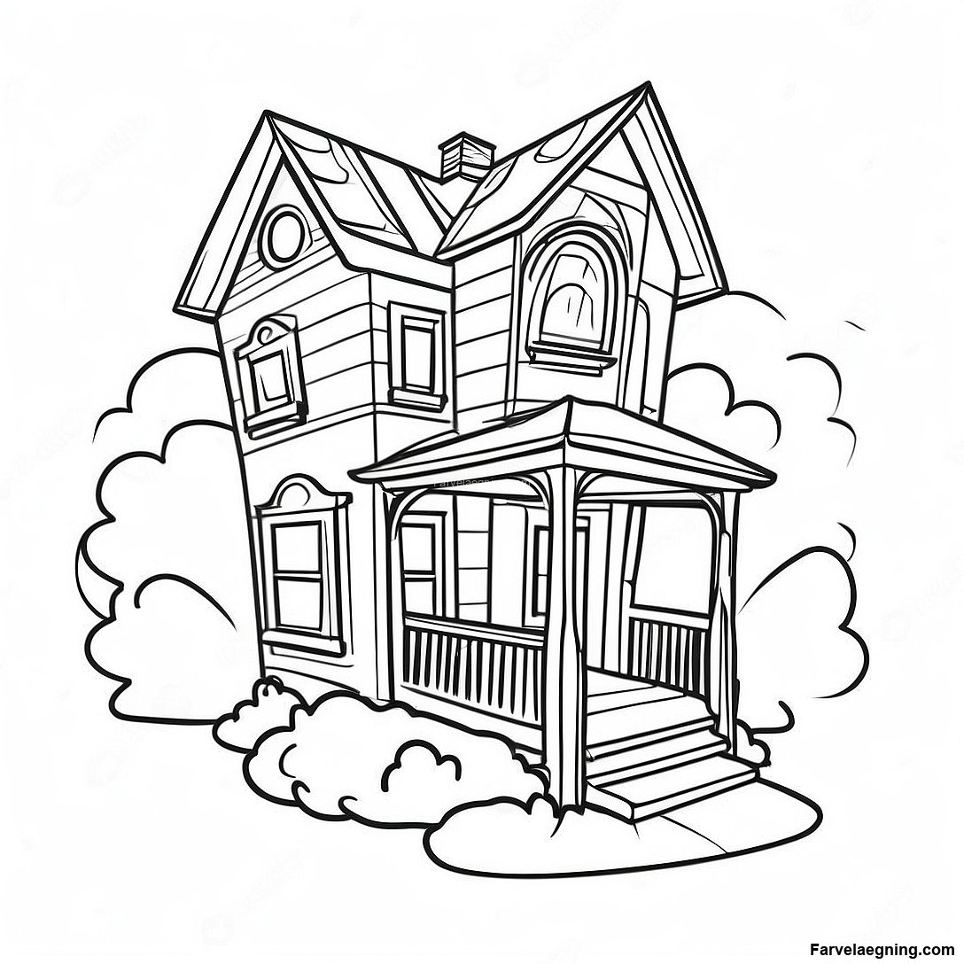 Download printbar PDF af Farverigt Hus Farvelægningsside
