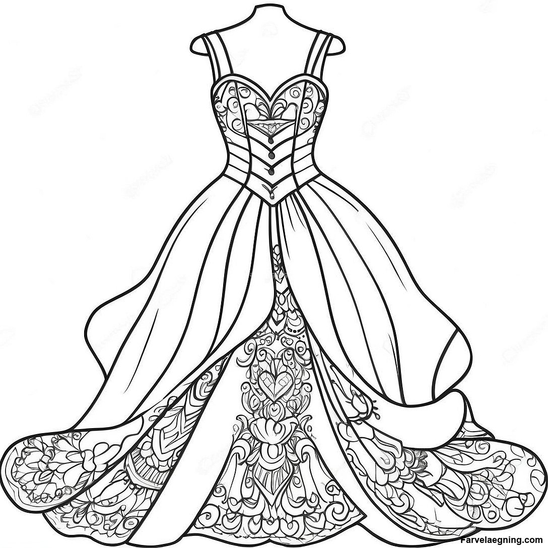Download printbar PDF af Fin Festkjole Farvelægningsside