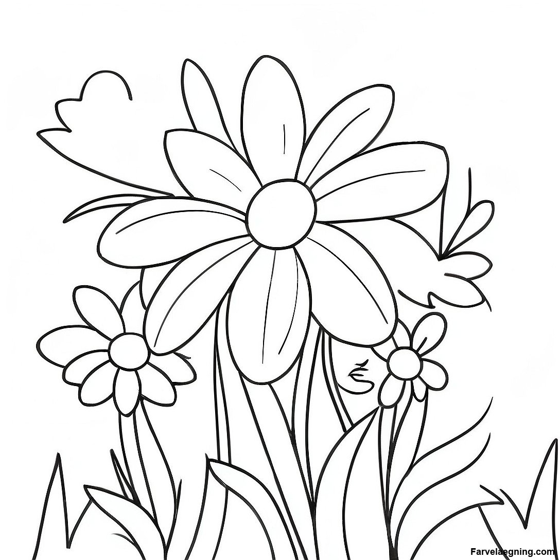 Download printbar PDF af Forårsmåned Marts Blomster Farvelægningsside