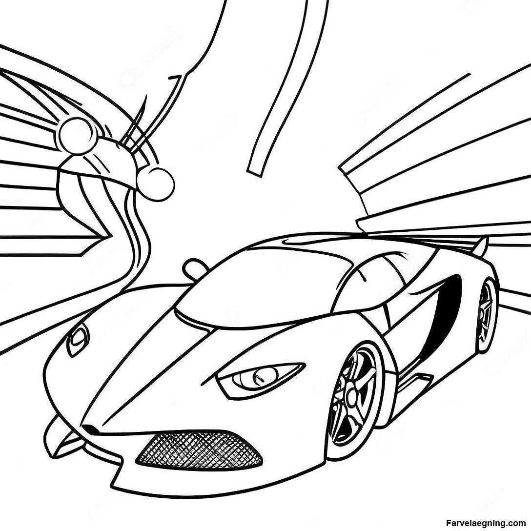 Download printbar PDF af Futuristisk Superbil Sportsbil Farvelægningsside