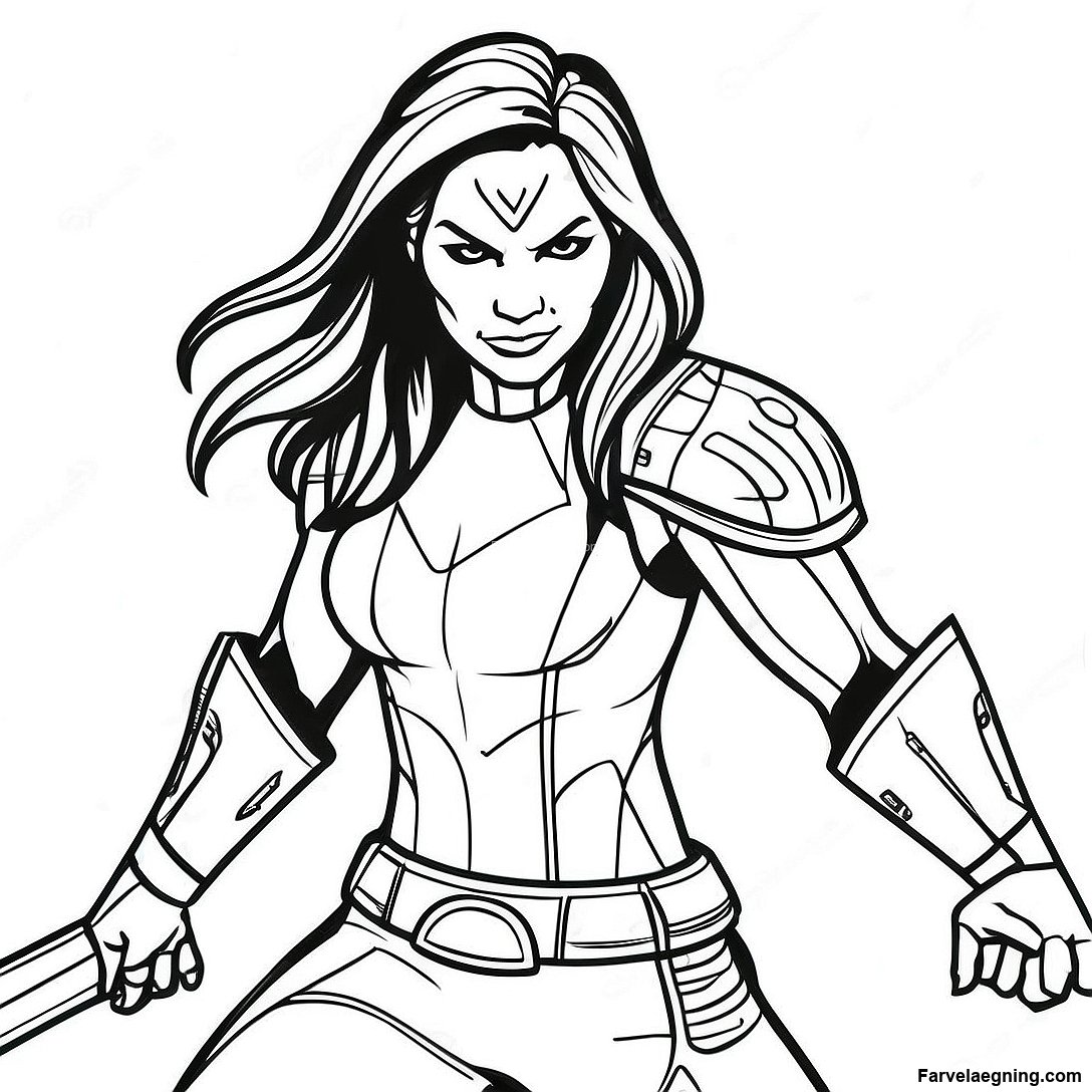 Download printbar PDF af Gamora I Kampstilling Farvelægningsside